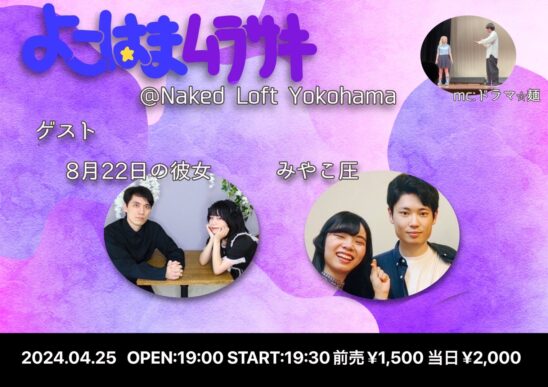 そんな男女コンビの魅力や背景を深掘りするべく、ネイキッドロフトのスタッフとして働いており、男女学生芸人「ドラマ⭐麺(仮)」としても活動している中村しょせちくが、”若手男女コンビ”と、そのコンビと共通点のある相性の良さそうな”アマチュアお笑い男女コンビ”をお呼びし、マッチングさせる横浜発の新たなお笑いライブです!!