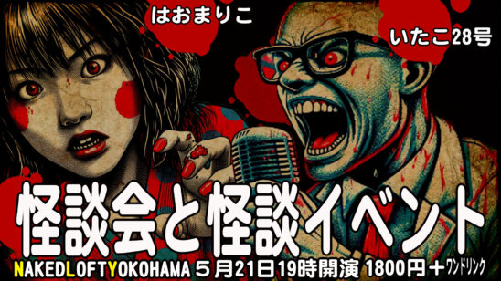 後半は、怪談界隈を生き延びて、もはや鵺のようないたこ28号と、昨年彗星のように現れたはおまりことのクロストーク&怪談を楽しんで頂きます。
