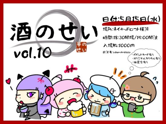 SCHEDULE 2024 05 15 Wednesday 酒のせい vol.10 OPEN 18:30 - START 19:00 Tweet 【出演】youmenosay みんなでワイワイお酒を飲んだりゲームをしたりするゆる〜いイベント.ᐟ.ᐟ 気軽に集まれ〜💨 TICKET◎会場チケット 会場¥ 1,000(要2オーダー) ご入場順はウェブ予約→当日券となります。 Share このイベントの予約は締めきりました。