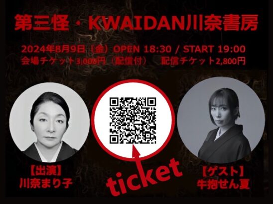 リアリティあふれる現代怪談から古典怪談まで魅せる女性怪談師No.1と言えばこの人!今回は牛抱せん夏をゲストにお迎えして開催する、川奈まり子主催怪談イベント第三怪!怪談作家・川奈まり子とゲストが魅せるソリッドな独演怪談と、妖しいクロストークによる斬新かつ濃厚な怪体験をお約束します。