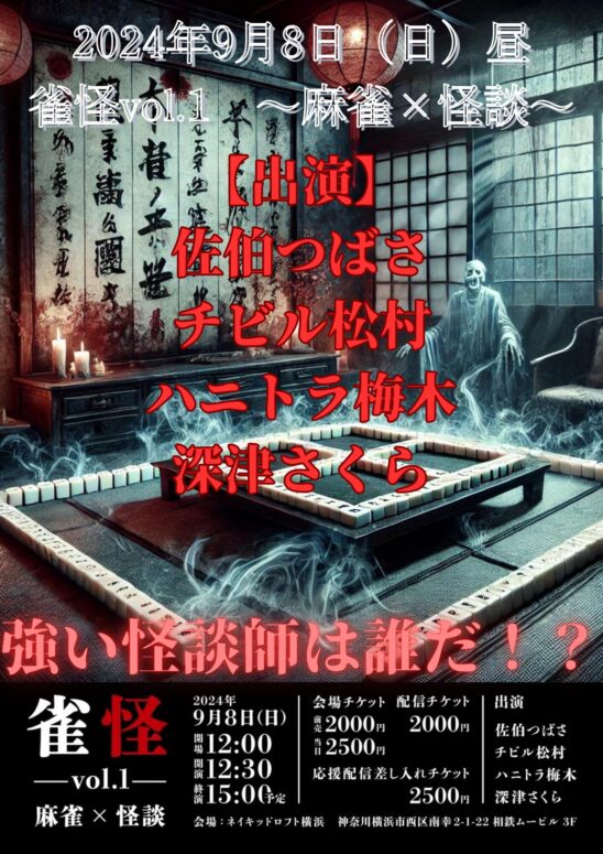 麻雀をしながら怪談をし、点数を競う。