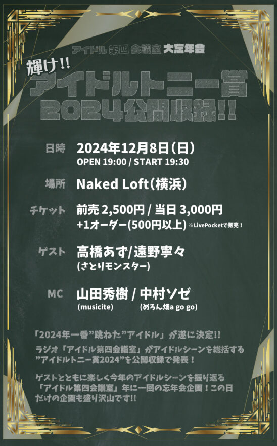 ラジオ「アイドル第四会議室」が今年のアイドルシーンを総括する”アイドルトニー賞2024”を公開収録で発表!
