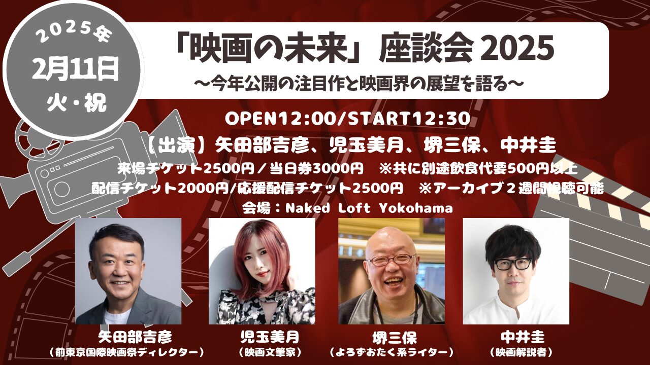 【出演】矢田部吉彦(前東京国際映画祭ディレクター)、児玉美月(映画文筆家)、堺三保(よろずおたく系ライター)、中井圭(映画解説者)