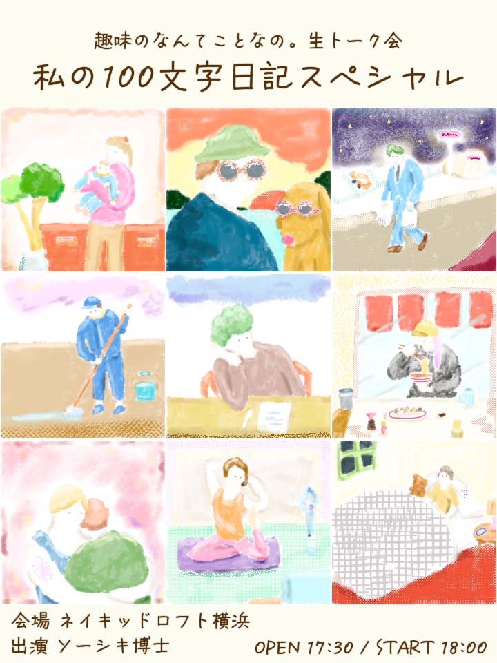 ソーシキ博士がネイキッドロフトに帰ってきた!はかせが気が向いた時に密かに配信している趣味のなんてことなの。の人気コーナー「私の100文字日記」をイベント化!皆様が書いた100文字の日記を会場で読み上げながらあれやこれやと話したり、エピソードを足して台無しにしたりします。(20時頃終了予定)