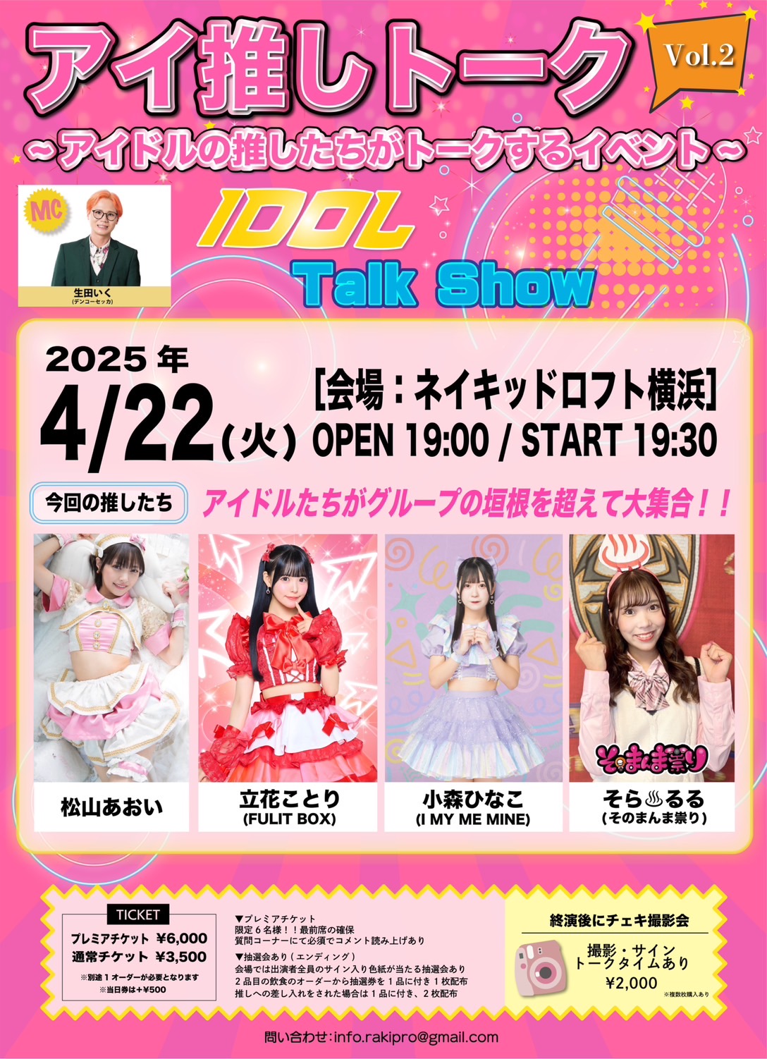 入場チケット3500円 当日券 4000円(別途1オーダー500円以上)