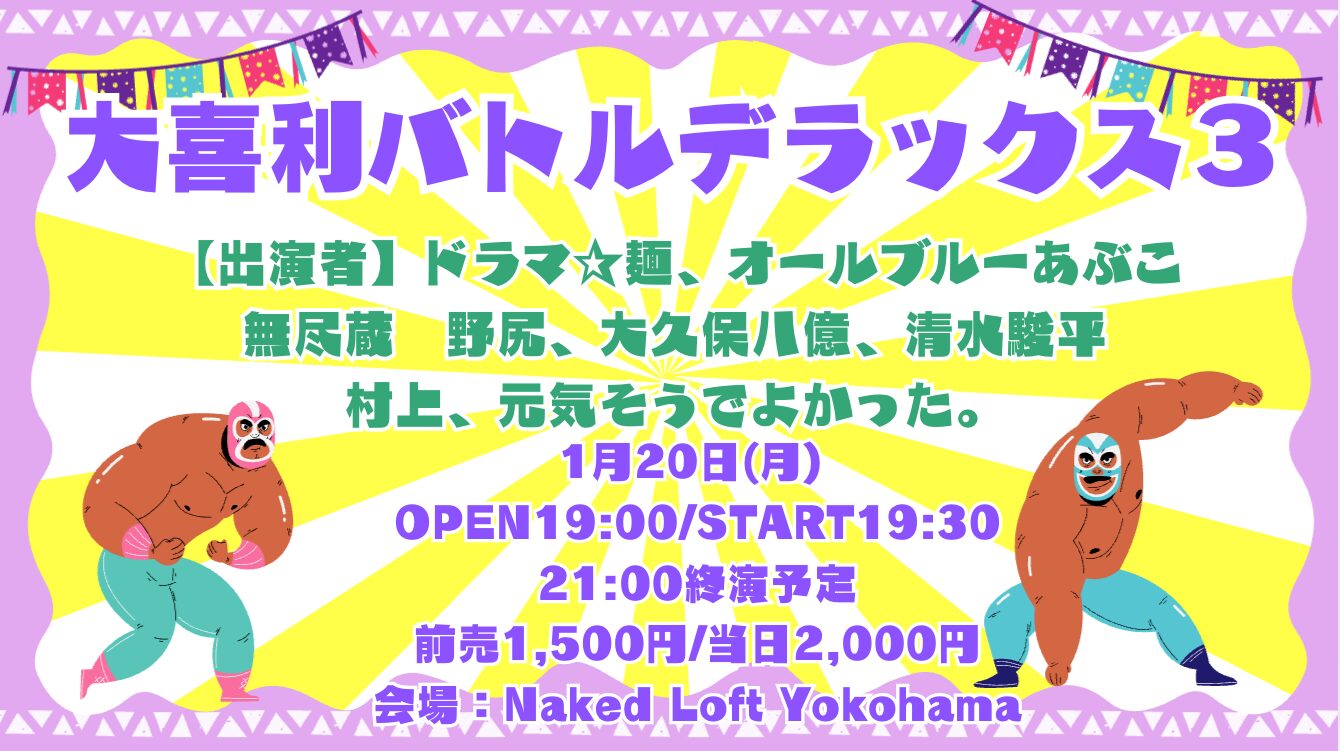 NAKED LOFT YOKOHAMAとドラマ☆麺の共同主催で行われる、回答数のみで得点が加算されていくチーム対抗大喜利ライブ!