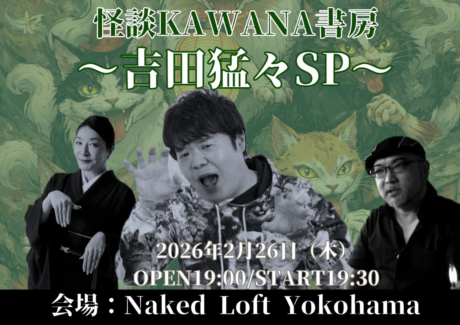 毎月とっておきのゲストをお迎えして怪談とフリートークをお届けする怪談探求トークライブ『怪談KAWANA書房』