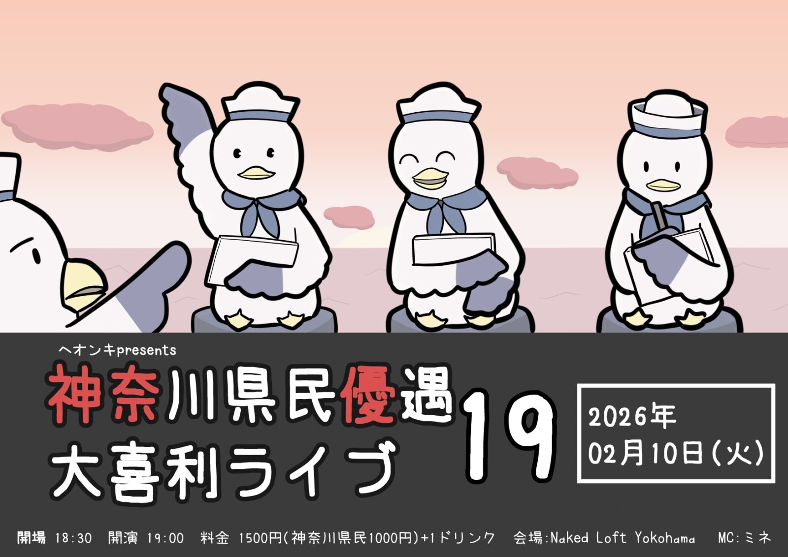 普段はヘオンキ(@heonki5)が神奈川県の各地にて主催している集いである「神奈川県民優遇大喜利会」をライブ形式で行います!