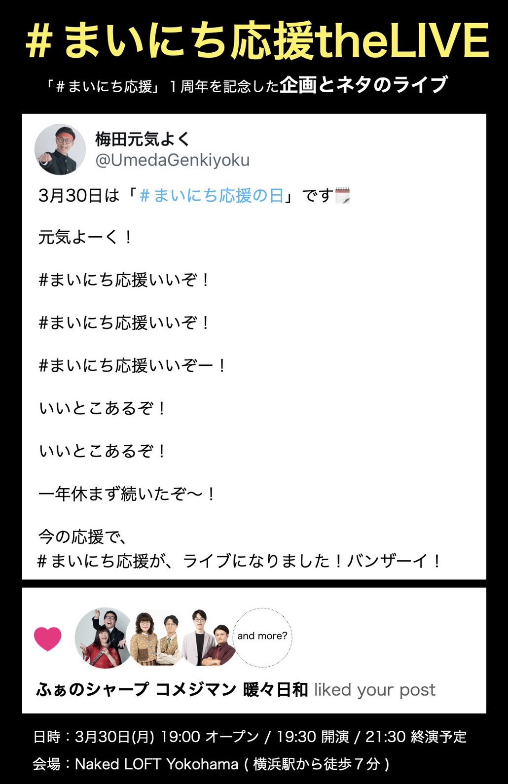 梅田元気よくがSNSで毎日投稿している「#まいにち応援」が1周年。