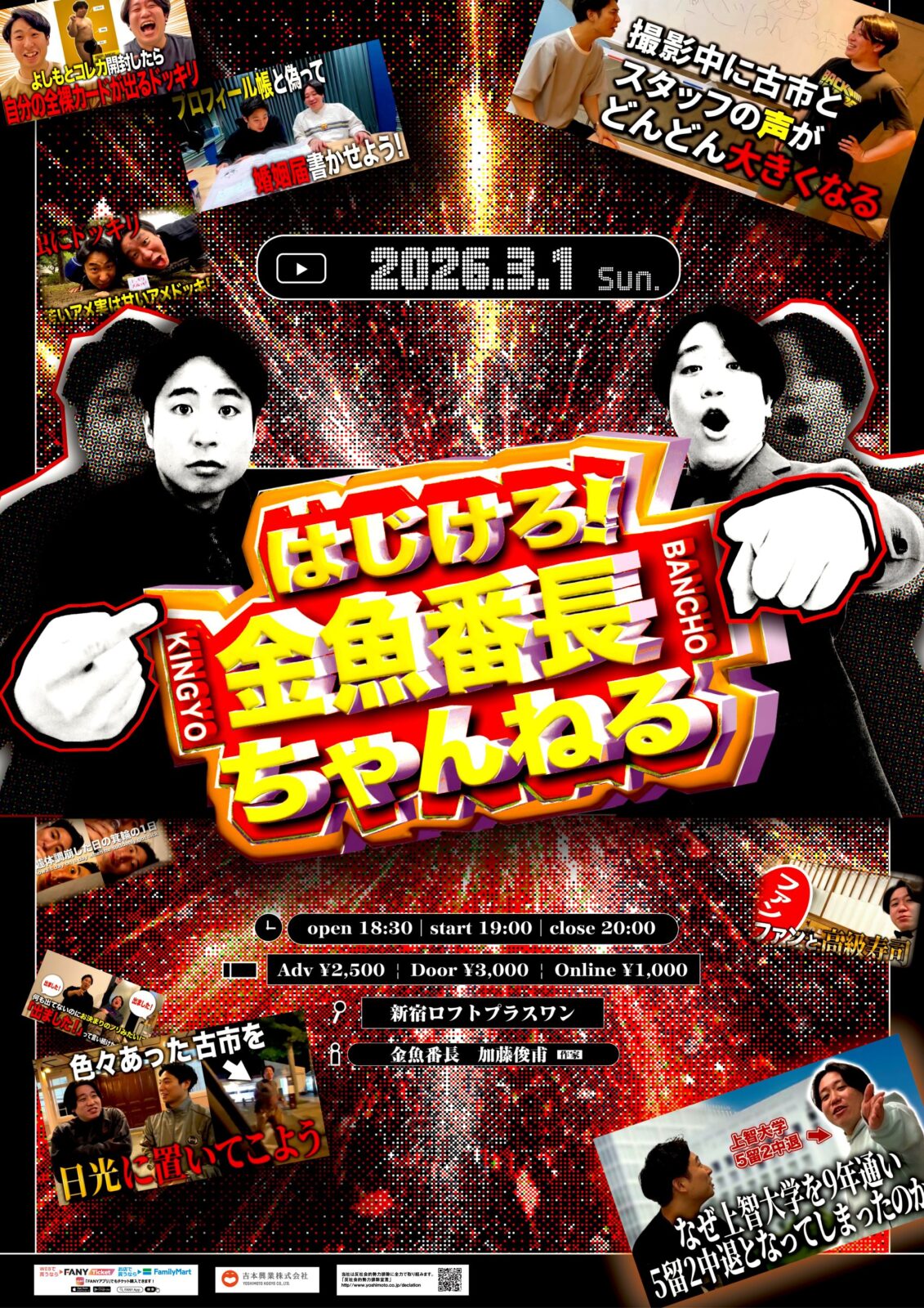 祝1周年!はんにゃ金田SHOWwww子ども達ぃに大感謝おっつんこスペシャルしたくて草、こえて森、こえて土になって、もはや華。 はんにゃ金田のyoutubeチャンネル開設一周年をみんなで祝おうトークライブ! ぜひご参加お待ちしております。 はんにゃ金田の... OPEN 18:00 / START 18:30 〜20:00終演(うち10分換気休憩あり) 【会場観覧チケット】 ¥2000 ※peatix...