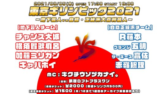 R藤本、ザ・ギース高佐、赤嶺総理、グランジ五明