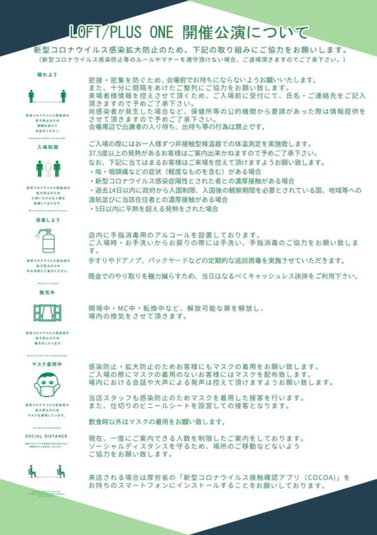 ※その他、詳しくは「ライブホール・ライブハウスにおける新型コロナウイルス感染拡大予防ガイドライン」もご覧ください。