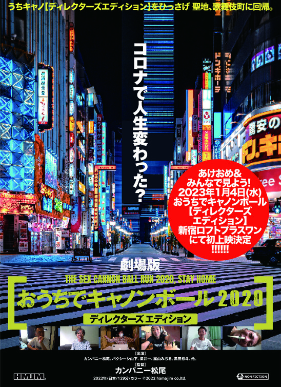そして、本家テレキャノの復活が期待される中、2020年春、COVID-19の世界的感染により本来東京オリンピック2020の裏で開催予定だった『テレキャノ2020 TOKYO』が改良され『おうちでキャノンボール2020』として開催、2022年に劇場公開されたAV発日本オリジナルのポイント制ナンパレースドキュメンタリーなのです。