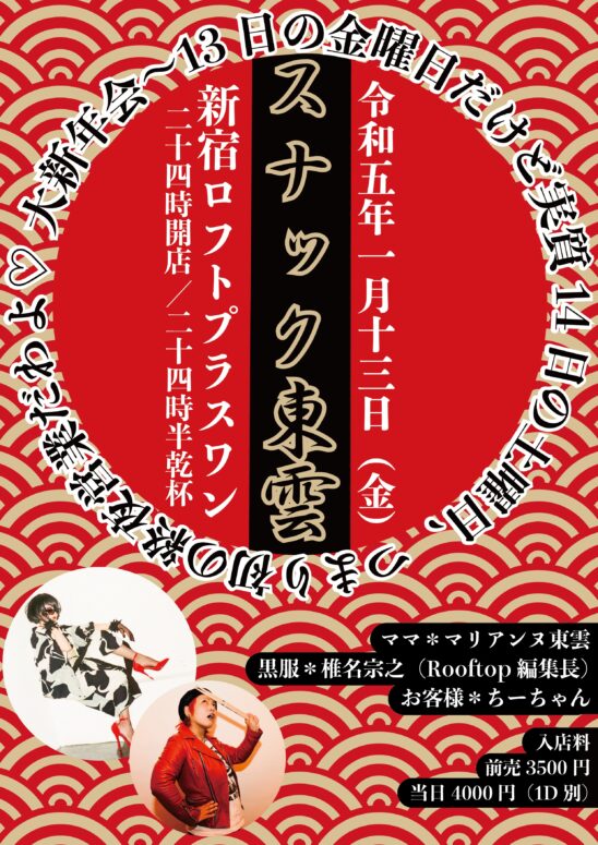 半年ぶりの営業となる今回は、ママのリアル飲み友達でもあるドラマーのちーちゃんを招いて初のオールナイト営業!