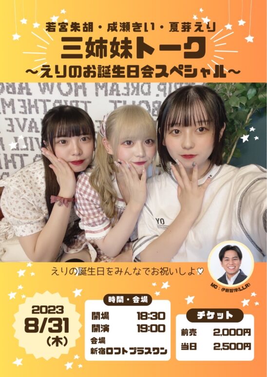 元アイドル 若宮朱胡・成瀬きい・夏芽えりの仲良し三姉妹トークイベント第2弾!!
