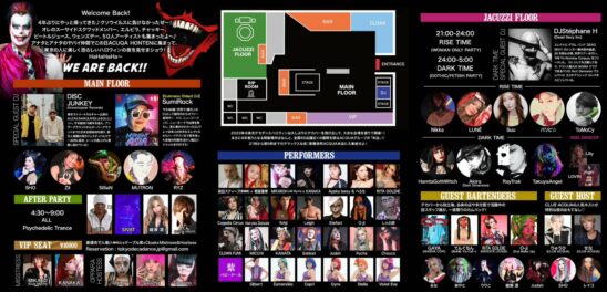 パリ、ニュージーランド、ニューヨークで出演を果たし、更に磨きのかかったDJプレイは本人の好きなエレクトロからハードテクノまで長年培った音楽の知識を活かし幅広いジャンルをMIXする!