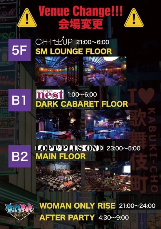 受付は5階のチルアップ歌舞伎町2号店になるので、5階で受付後にLOFT/PLUS ONEへお越し下さい)