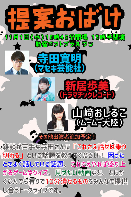 出演:寺田寛明、新居 歩美(ドラマチックレコード)、山﨑おしるこ(ムームー大陸)、しらす(牛女)
