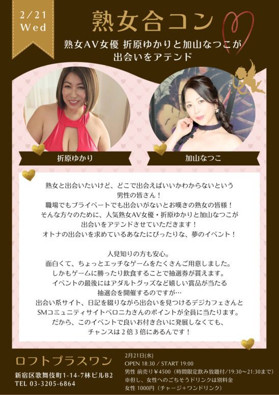 そんな方々のために、人気熟女AV女優・折原ゆかりと加山なつこが出会いをアテンドさせていただきます!