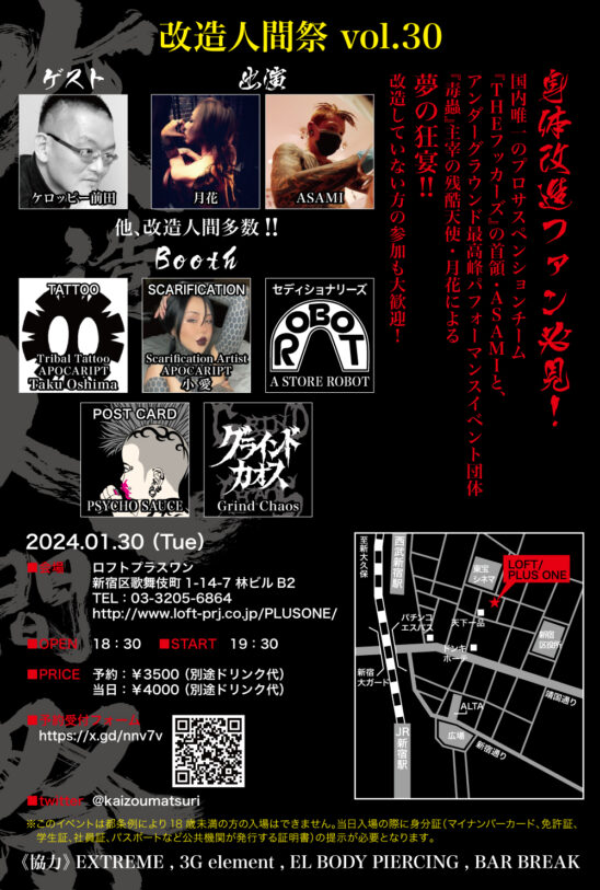 ※このイベントは都条例により18歳未満の方の入場はできません。当日入場の際に身分証(免許証、学生証、社員証、パスポートなど公共機関が発行する証明書)の提示が必要となります。
