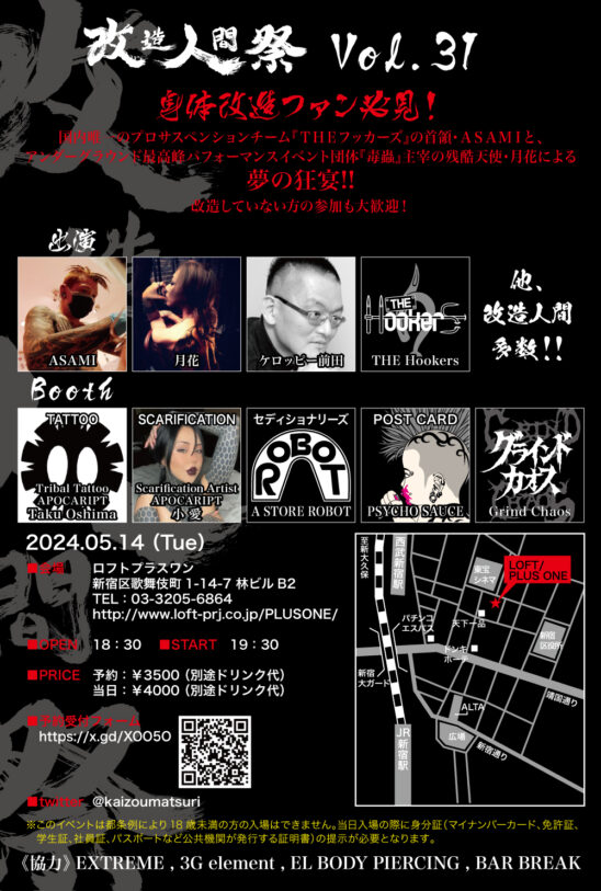 ※このイベントは都条例により18歳未満の方の入場はできません。当日入場の際に身分証(免許証、学生証、社員証、パスポートなど公共機関が発行する証明書)の提示が必要となります。