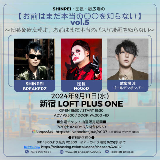 出演:SHINPEI(BREAKERZ)、団長(NoGoD)、歌広場淳(ゴールデンボンバー)