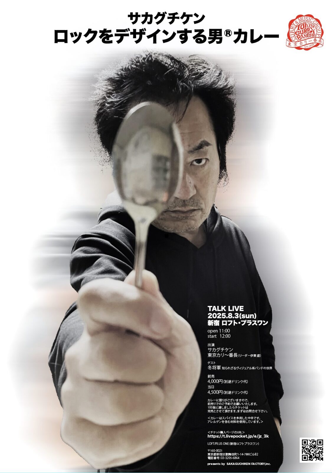 「ロックをデザインする男®︎ サカグチケン」×「東京カリ〜番長」のスペシャルコラボが実現!この日しか食べられない「ロックなカレー」をぜひ召し上がりにいらしてください。