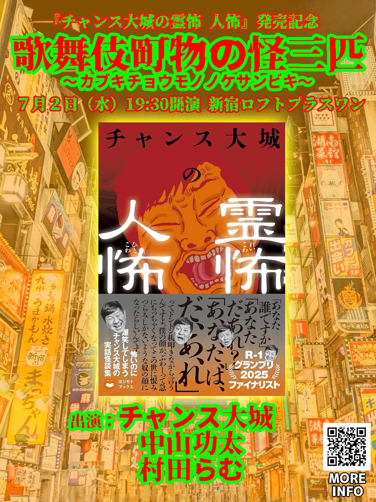 不良に狙われて埋められた話や大阪下町で遭ったヤバイ話など”すべらない怖い話”語らせたら日本一・チャンス大城! 『チャンス大城の霊怖 人怖』発売を記念して怪談シーズンの頭を飾るトークイベント開催です!