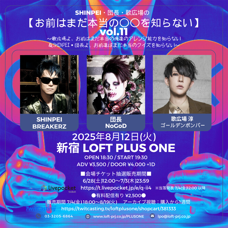 出演:SHINPEI(BREAKERZ) / 団長(NoGoD) / 歌広場淳(ゴールデンボンバー)