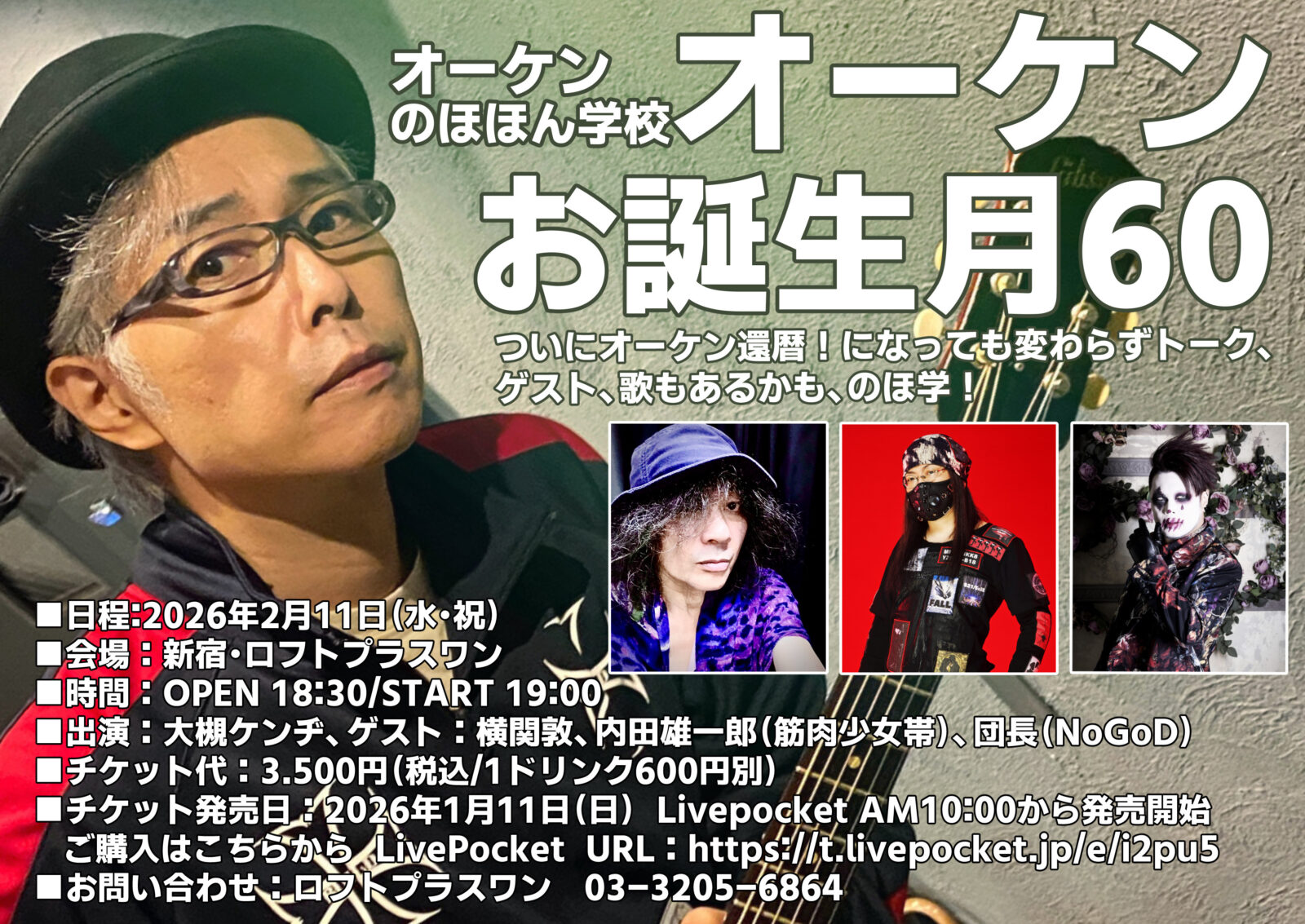 オーケンのほほん学校~オーケンお誕生月60 「ついにオーケン還暦!になっても変わらずトーク、ゲスト、歌もあるかも、のほ学!」