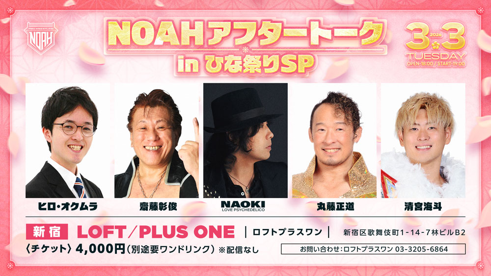 プロレスを見たあとは、あーだこーだ語りたいんだ!というコンセプトで始まったNOAHアフタートーク。これまでYouTubeLIVEで配信してきましたが、今回は公開で実施! みんなでプロレスの話をしましょう!