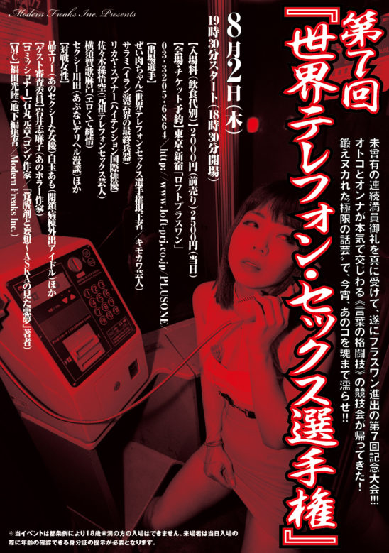 ※当イベントは都条例により18歳未満の方の入場はできません。来場者は当日入場の際に年齢の確認できる身分証の提示が必要となります。