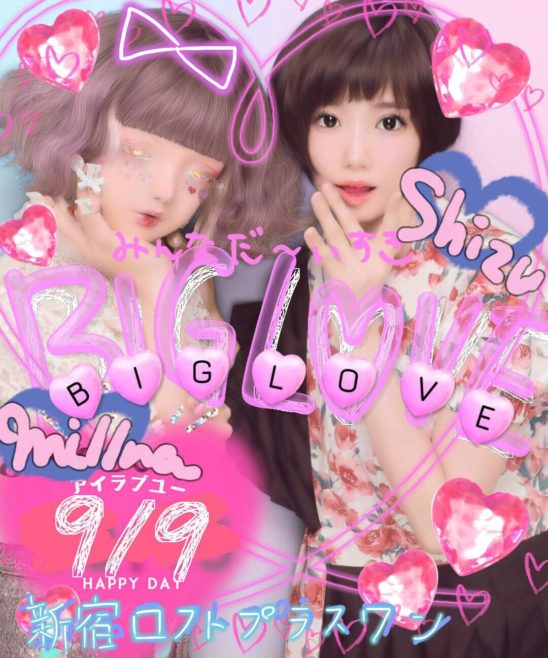 SCHEDULE 2018 09 09 Sunday DAY EVENT 「水野しずとmillnaのBIGLOVE」 OPEN 12:00 - START 13:00 Tweet 【出演】水野しず、millna(ドールモデルプロデューサー) TICKET前売¥2500 / 当日¥3000(税込・要1オーダー¥500以上) 前売はe+にて8/11(土)12:00より発売開始! ※入場特典として、告知画像のステッカーをプレゼント! Share