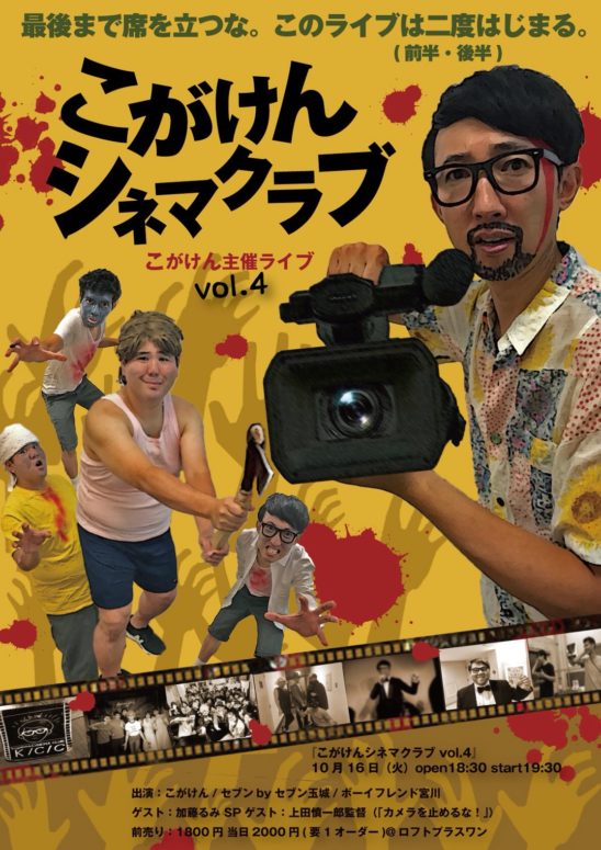「細かすぎて伝わらないモノマネ選手権」でお馴染みの芸人“こがけん”による、映画大好き芸人を迎えての映画トークライブが第4回目にしてここ、ロフトプラスワンにて開催!