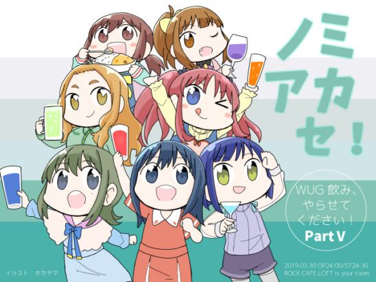 WUGの曲を聴きながらノミアカセ!というオフ会イベントです。WUGの曲をかけながらWUGについて語りましょう。