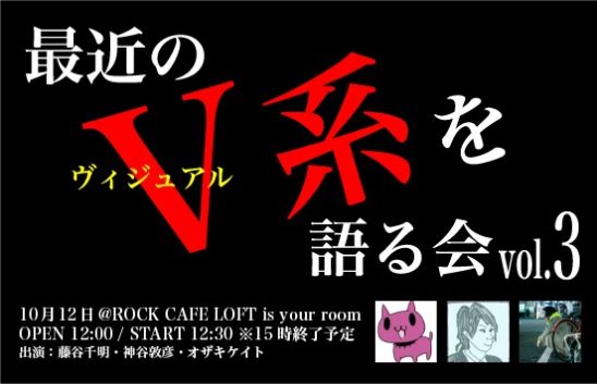 若手情報から大御所の動向まで、ライター・ブロガーたちがV系シーンを、時にゆるふわに、時に深読みしながら語り合うイベント第3弾!
