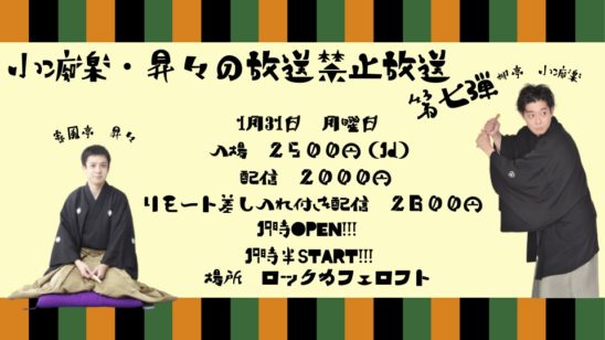 毎回ヤバイ話しか出てこない大人気イベントです!落語の話は一切しないと言いつつ熱く語ってしまったり、結局実名出ちゃったり毎回ギリギリの内容です。お見逃しなく!