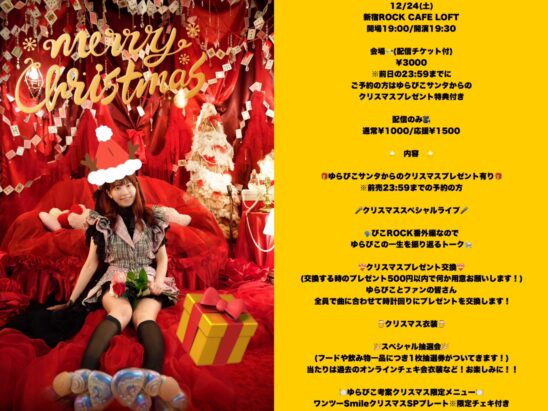 ・配信付き!¥3000(前日の23:59までにご予約の方はゆらぴこサンタからのクリスマスプレゼント特典付き)