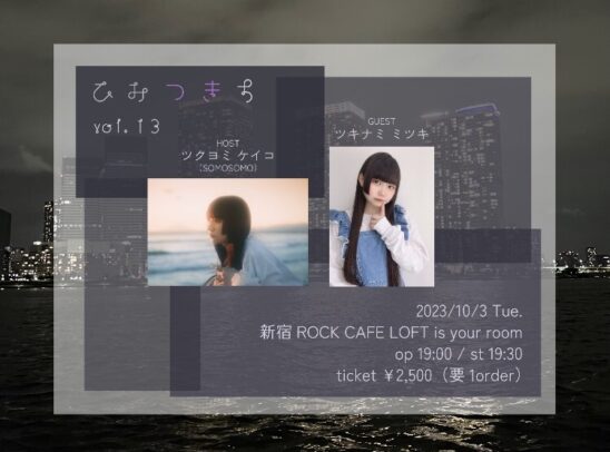SCHEDULE 2023 10 03 Tuesday 『ひみつきち vol.13』 OPEN 19:00 - START 19:30 Tweet 出演 ツクヨミ ケイコ ゲスト ツキナミ ミツキ TICKET前売り¥2,500 当日¥3,000 (共に要1オーダー) ご予約は下記予約フォームにて9/28(木)18:00より受付開始! Share このイベントの予約は締めきりました。