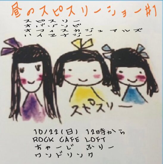 SCHEDULE 2023 10 22 Sunday DAY EVENT 昼のスピスリーショウ #1 OPEN 12:00 - START 12:00 Tweet TICKETチャージフリー!要1オーダー! Share