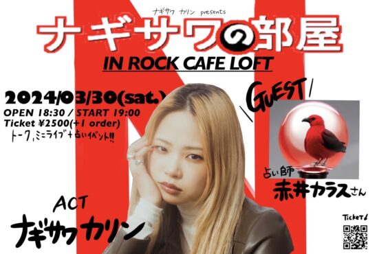 SCHEDULE 2024 03 30 Saturday ナギサワの部屋 OPEN 18:30 - START 19:00 Tweet 出演:ナギサワカリン、赤井カラス TICKET前売2,500円 / 当日 3,000円 チケットはLive Pocketで販売中! Share