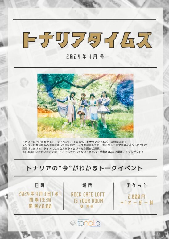 トナリアの”今”がわかるトークイベント、その名も「トナリアタイムズ」の開催決定!