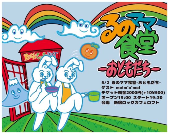 SCHEDULE 2024 05 02 Thursday 『るのママ食堂-おともだち-』 OPEN 19:00 - START 19:30 Tweet 出演:朝比奈るの/るのママ ゲスト:molm’o’mol TICKET当日券(¥2,500)あり!開場後直接担当へお越しください。 料金:¥2,000(要1オーダー¥500以上) ご予約は下記の予約フォームにて受付! Share このイベントの予約は締めきりました。