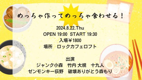 ※お客様へ出演者が作ったお料理のご提供はございません。