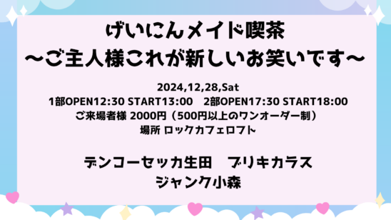 ご来場者様 各部共に前売り/当日2,000円(500円以上のワンオーダー制)