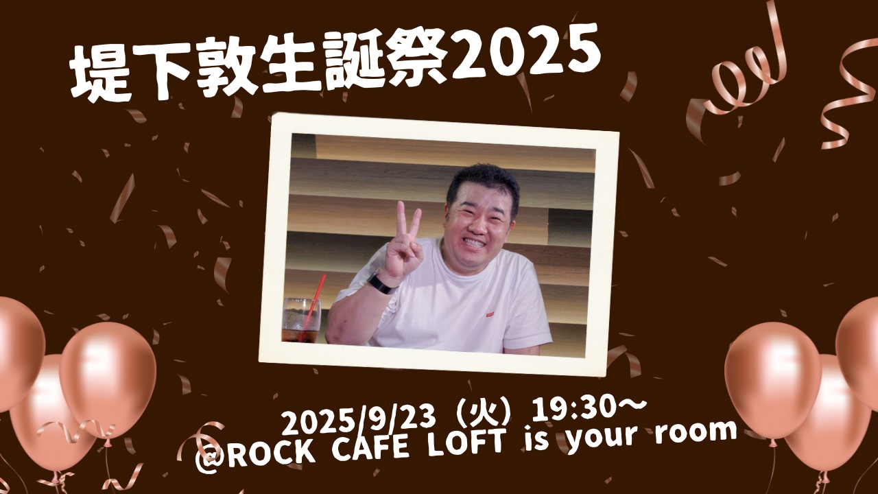 SCHEDULE 2025 09 23 Tuesday 堤下敦生誕祭2025 OPEN 19:00 - START 19:30 Tweet 【出演】 堤下敦 TICKET[会場チケット] ●前売りチケット¥3,500 ●当日チケット¥4,000 ※共に飲食代別/要1オーダー¥500以上 ※お客様都合によるチケットキャンセルは受け付けておりません。 ※チケットはLivePocketにて販売中! ︎︎購入はこちらから☜ click! #堤下敦 Share