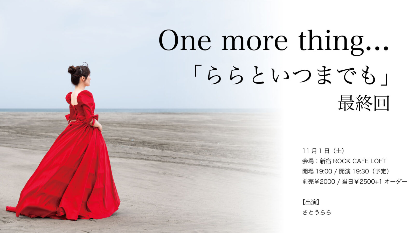 SCHEDULE 2025 11 01 Saturday ONE MORE THING 「ららといつまでも」最終回 OPEN 19:00 - START 19:30 Tweet 【出演】 さとうらら TICKET[会場チケット] ・前売チケット¥2,000 ・当日チケット¥2,500 ※共に飲食代別 / 要1オーダー¥500以上 ※会場チケットTIGETにて予約受付中! ︎︎▶︎予約はこちらから Share