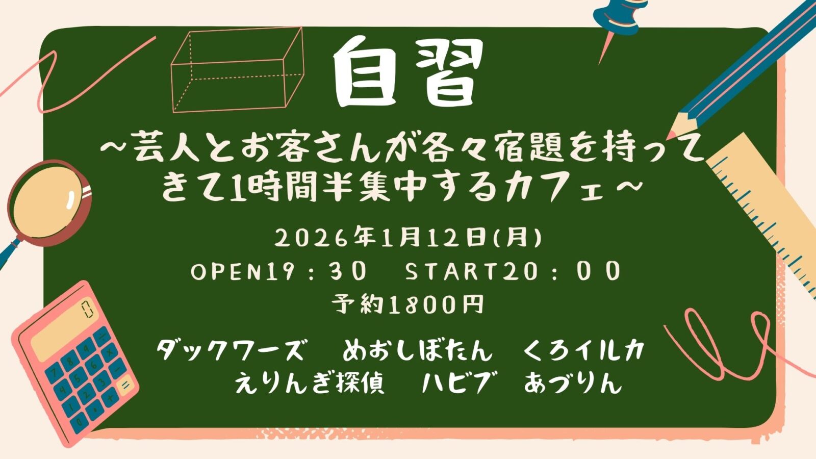 芸人とお客さんが学校の宿題、レポート、仕事の資料作成、ネタ作り、確定申告、溜まっているライブのレポ、読書などを各々持ち寄り各々集中してそれに取り組むライブです。