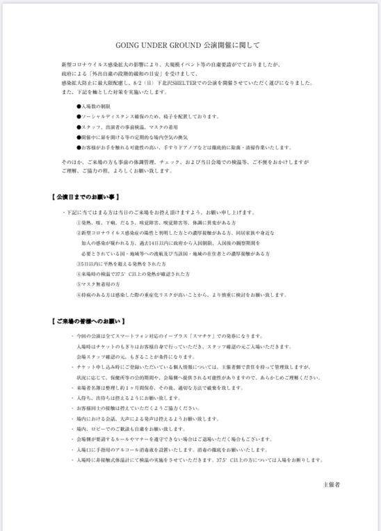 ■GOING UNDER GROUND「25 flight rock with you」公演延期のお知らせ