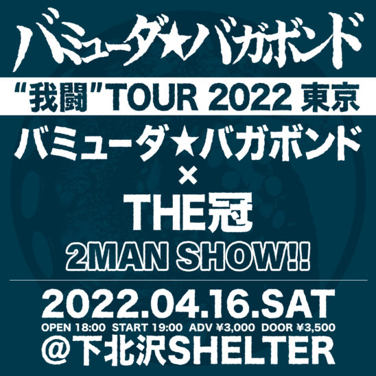 SCHEDULE 2022 04 16 Saturday バミューダ★バガボンド 我闘TOUR 2022 4th フルアルバム“我カク闘ヘリ”レコ発 in 東京 OPEN 18:00 - START 19:00 Tweet THE冠 バミューダ★バガボンド TICKETADV¥3000 / DOOR¥3500 【発売日】 1/16〜e+ Share